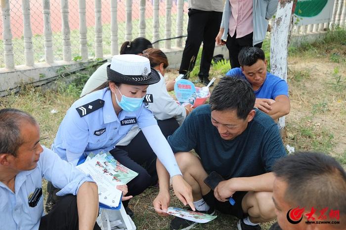 高考首日,东明县公安局交警大队民警早早来到辖区考点。在学校门口,他们化身交通安全“守护者”,将印有“一盔一带,安全常在;拒绝酒驾”标语,以及便民服务处理违法地点的精美扇子,和图文并茂的“一盔一带”宣传传单,一一递到焦急等候的学生家长手中。